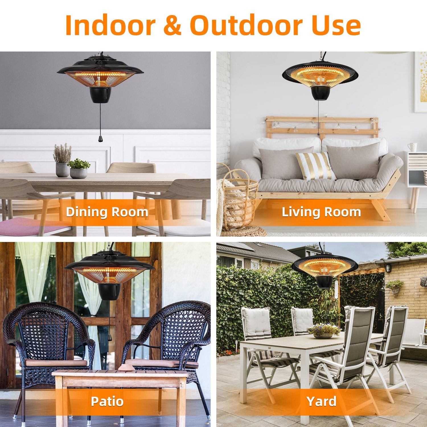 *Overheating Protection*:Overheating protection system will automatically shut down the electric hanging heater to prevent any safety hazards. A safe and reliable companion fits for both indoor and outdoor,like living room,bedroom,dining room,patio,yard and so on.